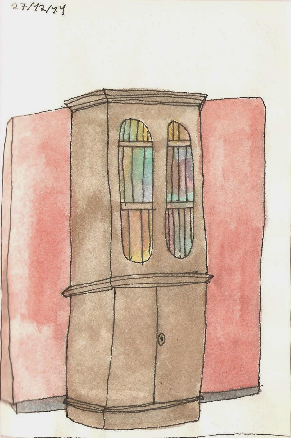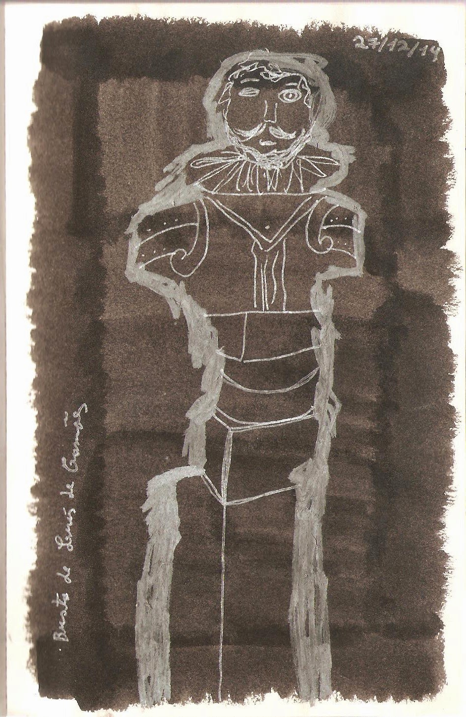 | Primeiro desenho do encontro à entrada da Biblioteca numa das janelas que tinha vista para o pátio. |