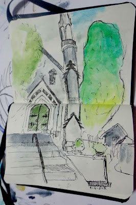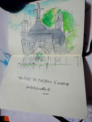 Fiz este desenho e os restantes abaixo quando estava ao pé dos serviços administrativos abrigada da chuva. Neste encontro o tempo não ajudou muito.