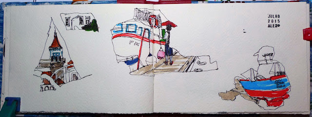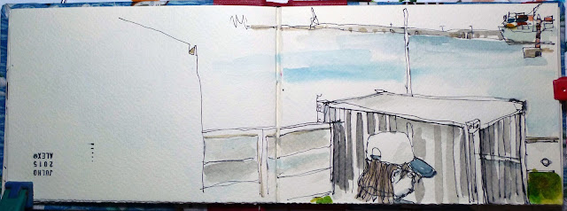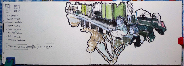 Com vontade de desenhar juntámo-nos em Ponta Delgada junto ao Cais da Sardinha que está a ser intervencionado, foi um pretexto para desenharmos e nos encontrarmos aproveitando a tarde de sábado e esquecer as chatices da semana. A zona encontra-se em obras, julgo que ali vão fazer uma um bar/ restaurante (afeto à Baia dos Anjos). Quando chegámos o recinto estava fechado com portão (uma novidade) passou a ser privado. Sempre gostei daquele recanto e a sensação foi estranha, aquela zona estando assecível a todos estava francamente mal tratada. Agora, está a ser arranjada com gosto e cuidado estético.... esperemos que tenha sucesso. Havemos de lá entrar para desenhar.