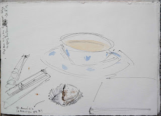 Quando saí do aeroporto havia uma fila enorme para apanhar táxis, o que me deu tempo para fazer dois desenhos e fez com que eu e os meus pais só conseguíssemos jantar as 23:30.