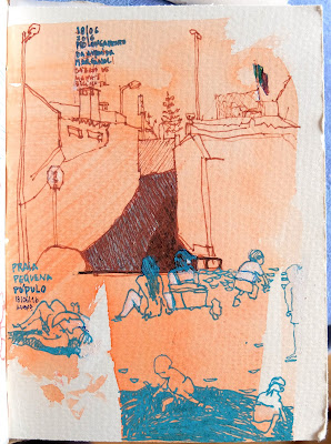 _Ahhh... a «ditadura» da aguarela leva-me a tentar experimentar outras coisas, mas de vez em quando lá me deixo levar pela sua portabilidade. Há tempos fui ao Nordeste onde as falésias são altas e as vistas largas... de encher a alma.