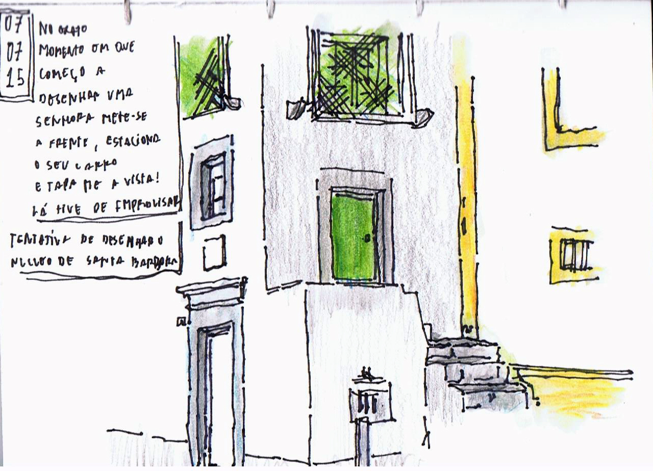 | Logo há saída da galeria, sentei me no puff e comecei a desenhar |