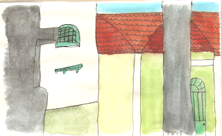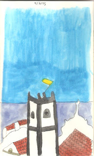 Depois sentei-me num café com os meus pais para colorir (ou como dizem lá no Brasil "aguarelar") os meus desenhos e fiz mais este.