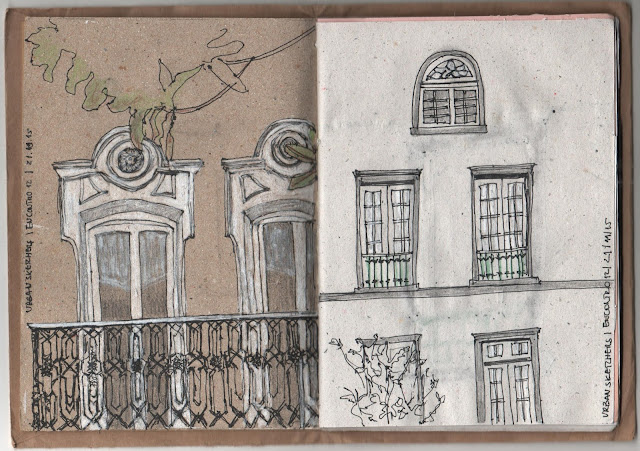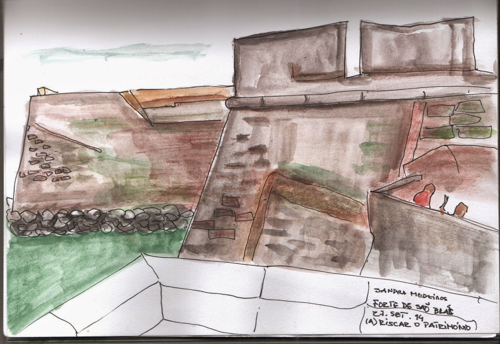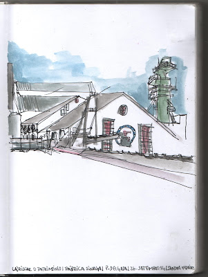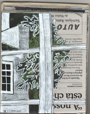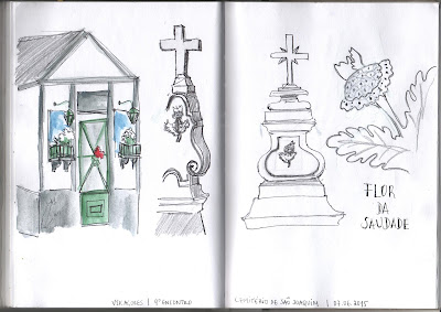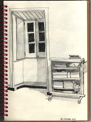 | Primeiro desenho do encontro à entrada da Biblioteca numa das janelas que tinha vista para o pátio. |