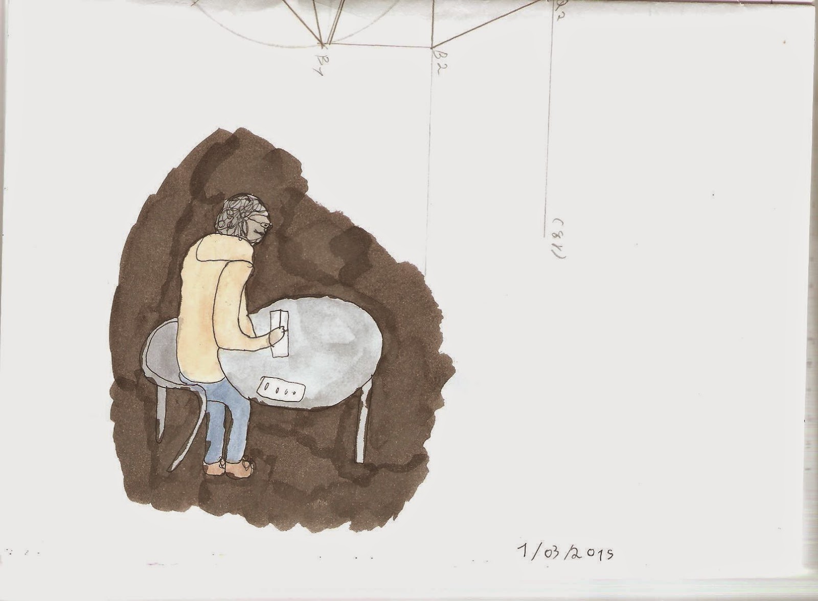 | Antes de tomar um "café" com a Sara decidi fazer um ultimo desenho daquele espaço. |